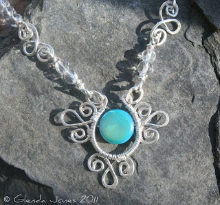 I love Copper and Green together and so chose Turquoise for the 'pie' filling and peridot for the necklace.